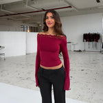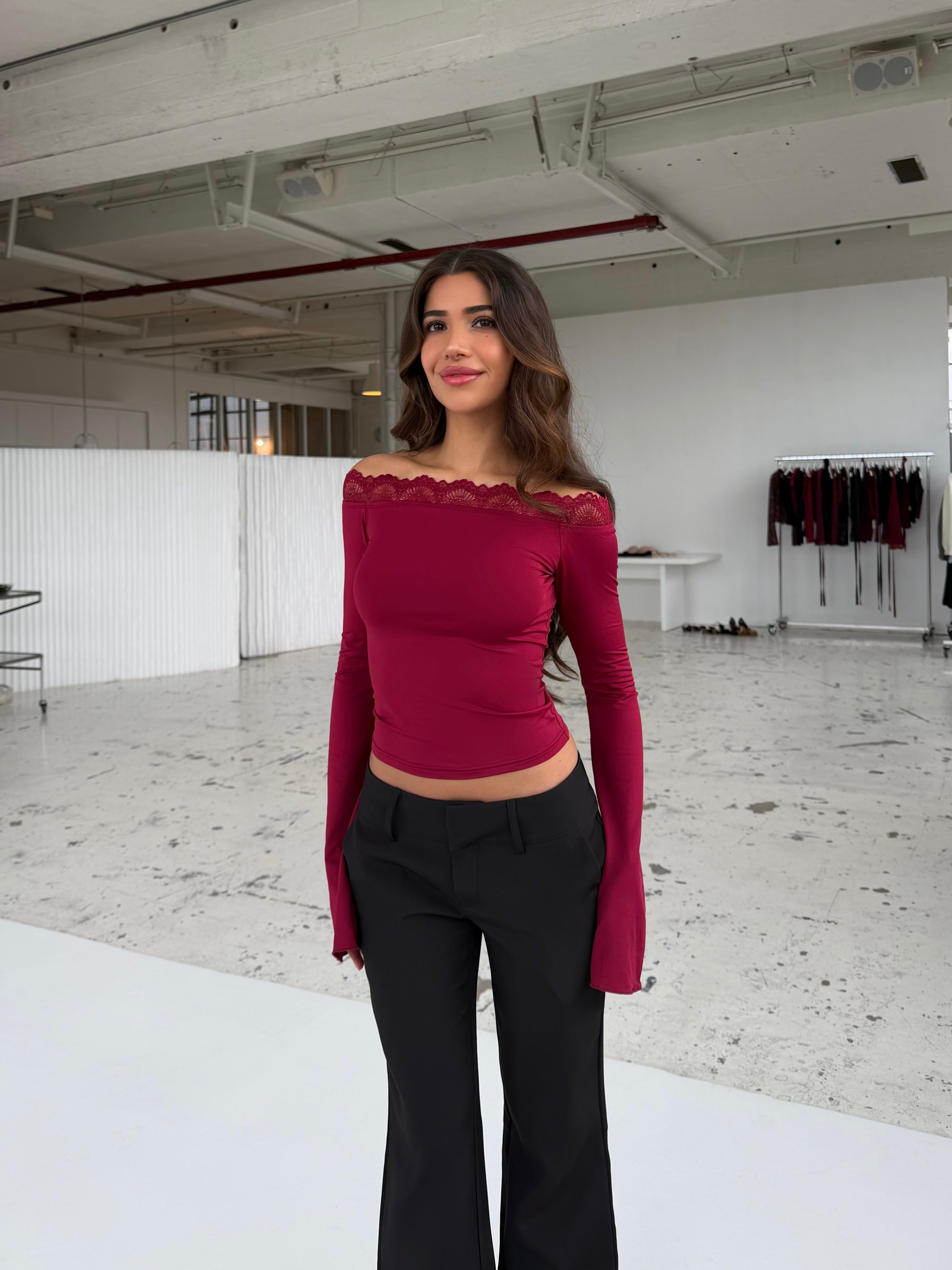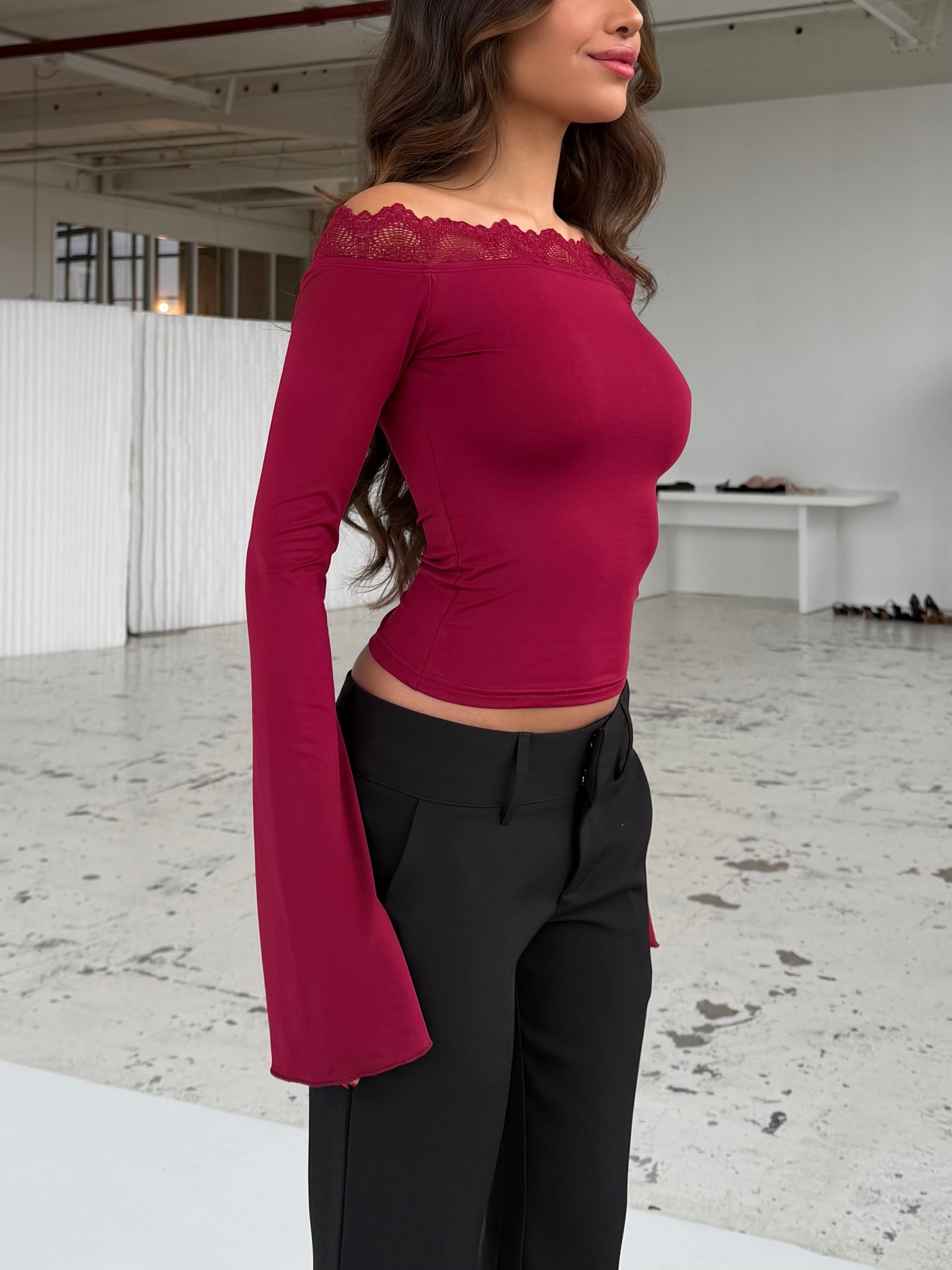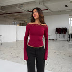Nydelig off-shoulder blondetopp med lange ermer. Toppen har mye stretch.