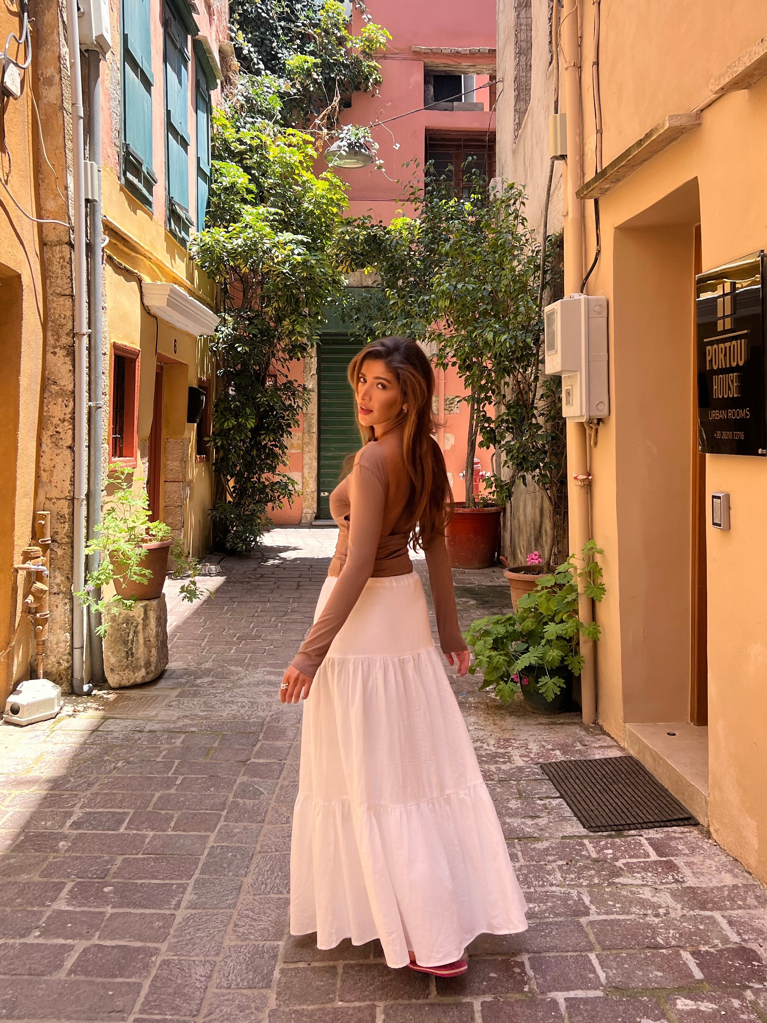 Langt elegant skjørt i myk bomull