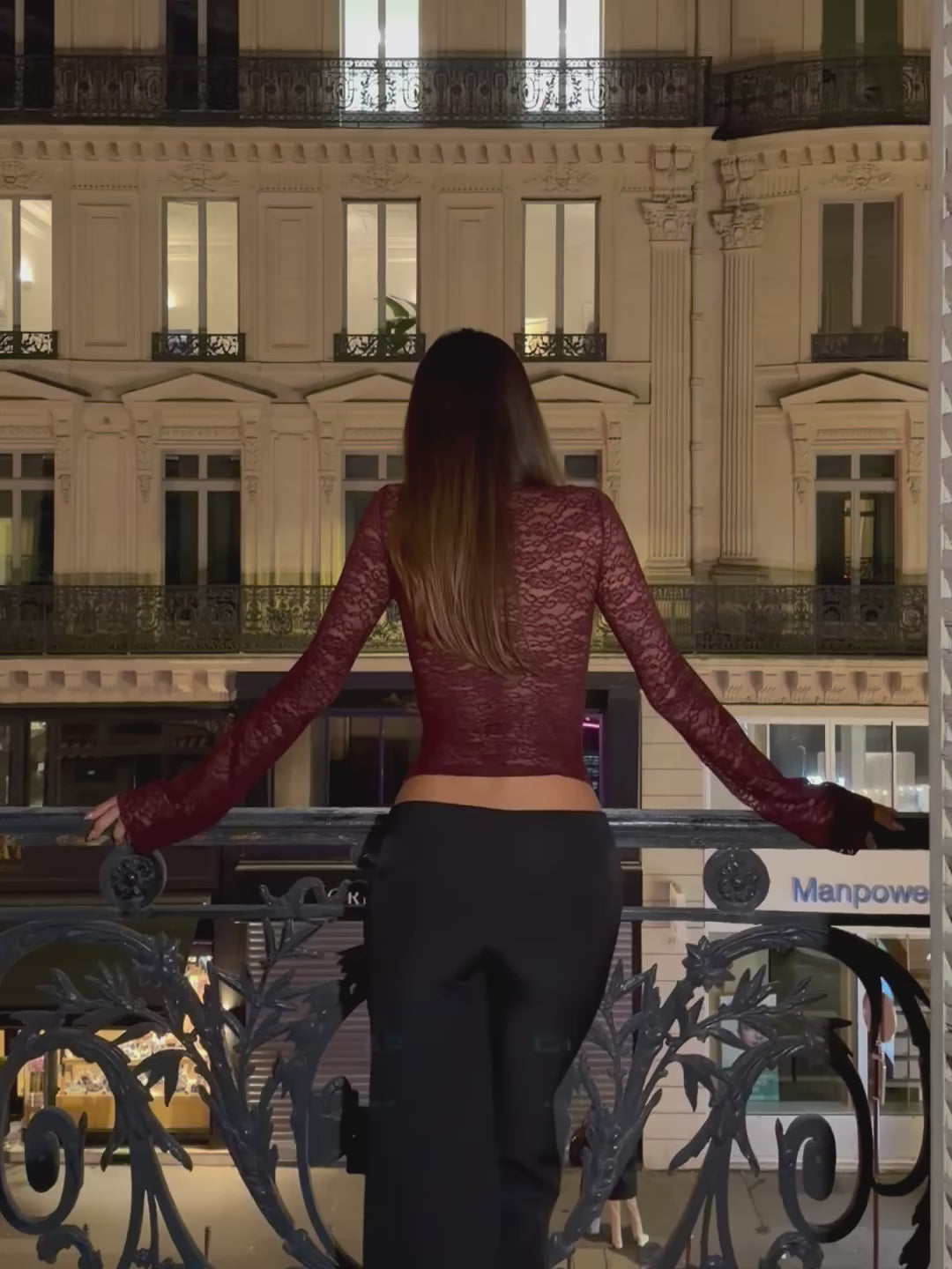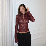 Vakker blondetopp med høy hals, knapper og lange ermer. Toppen har stretch.