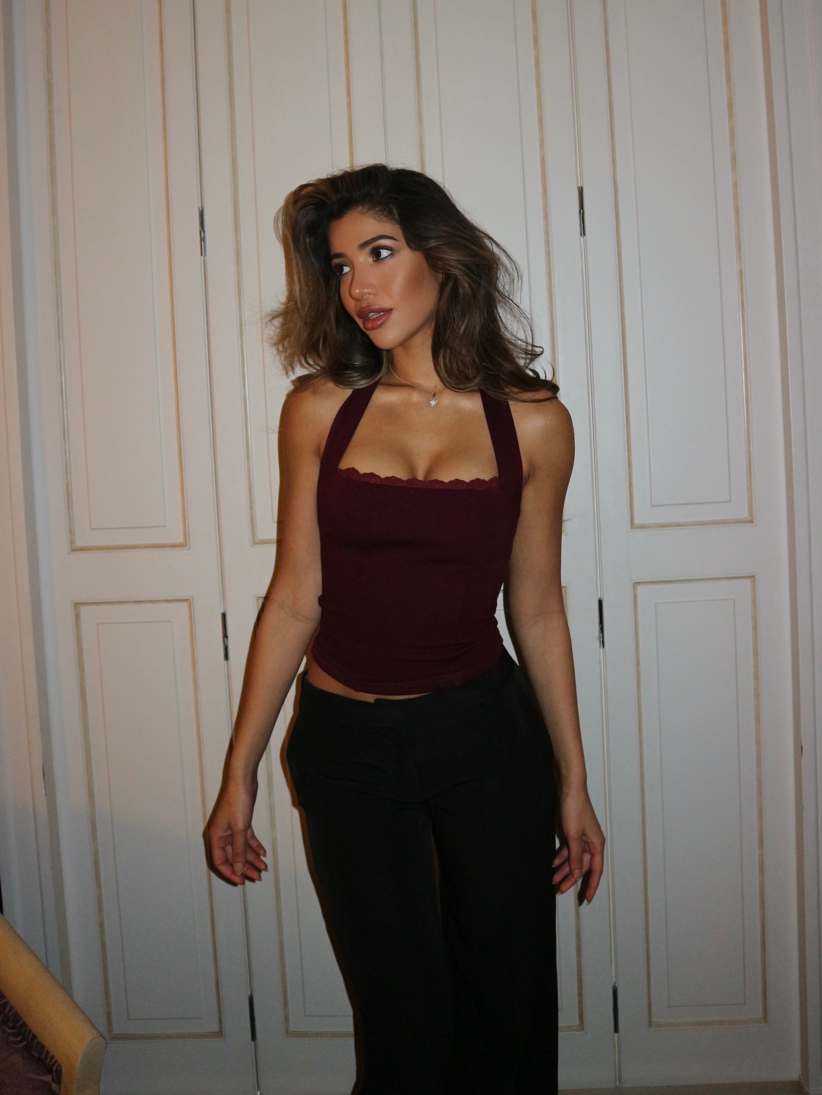 Nydelig blondetopp i materiale med mye stretch, som sitter godt på kroppen. Toppen har lange ermer og dyp utringning.