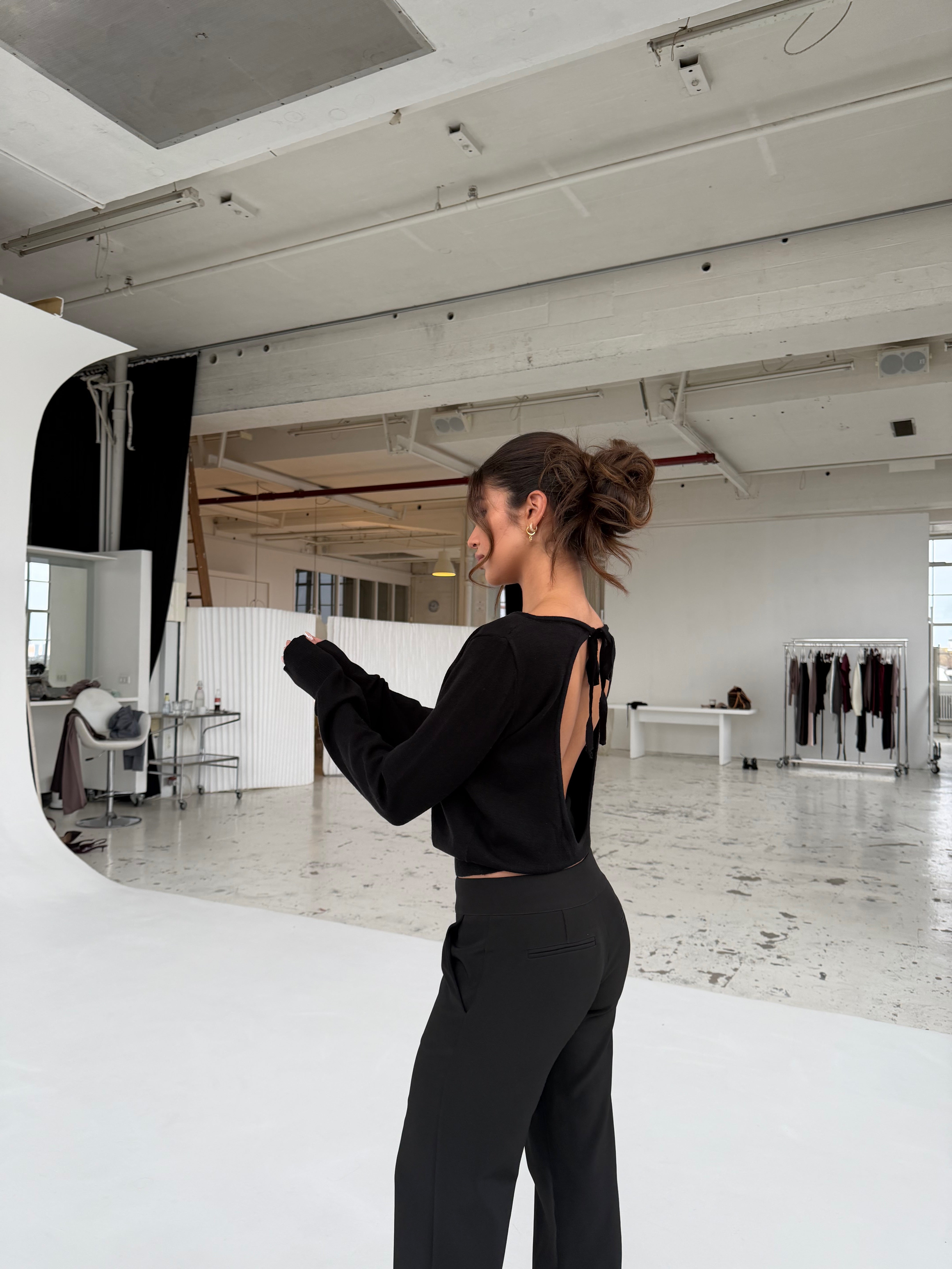 Open back knit top – Svart